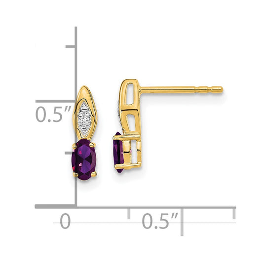 These 14k Yellow Gold Amethyst and Diamond Post Earrings are a stunning addition to any jewelry collection. The earrings feature gorgeous oval-shaped amethyst stones (5x3mm) and sparkling round diamonds (1mm), with a total of four stones in all. The amethysts have been heat-treated to enhance their natural beauty. The earrings...