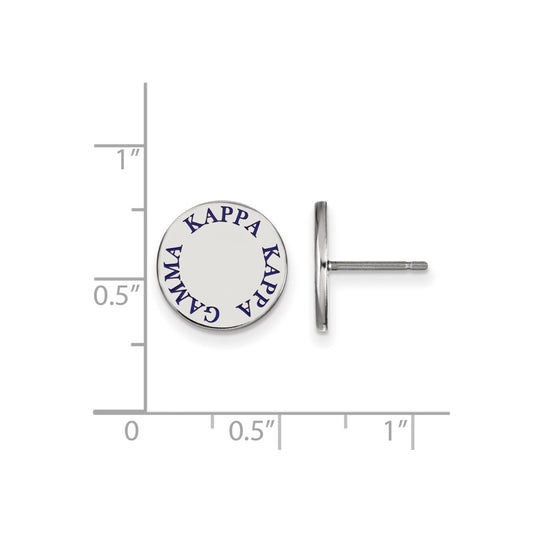 The Sterling Silver Rhodium-Plated Logoart Kappa Gamma Sorority Text Color Enamel Post Earrings showcase your pride with style. Crafted from high-quality sterling silver, these earrings are plated in shiny rhodium for a sleek finish. The small 12 mm size makes them perfect for everyday wear. Bright blue enamel accents highlight...