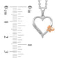 0.05 CT. T.W. Natural Diamond Double Row with Offset Butterfly Loop Heart Pendant in Sterling Silver and 14K Rose Gold