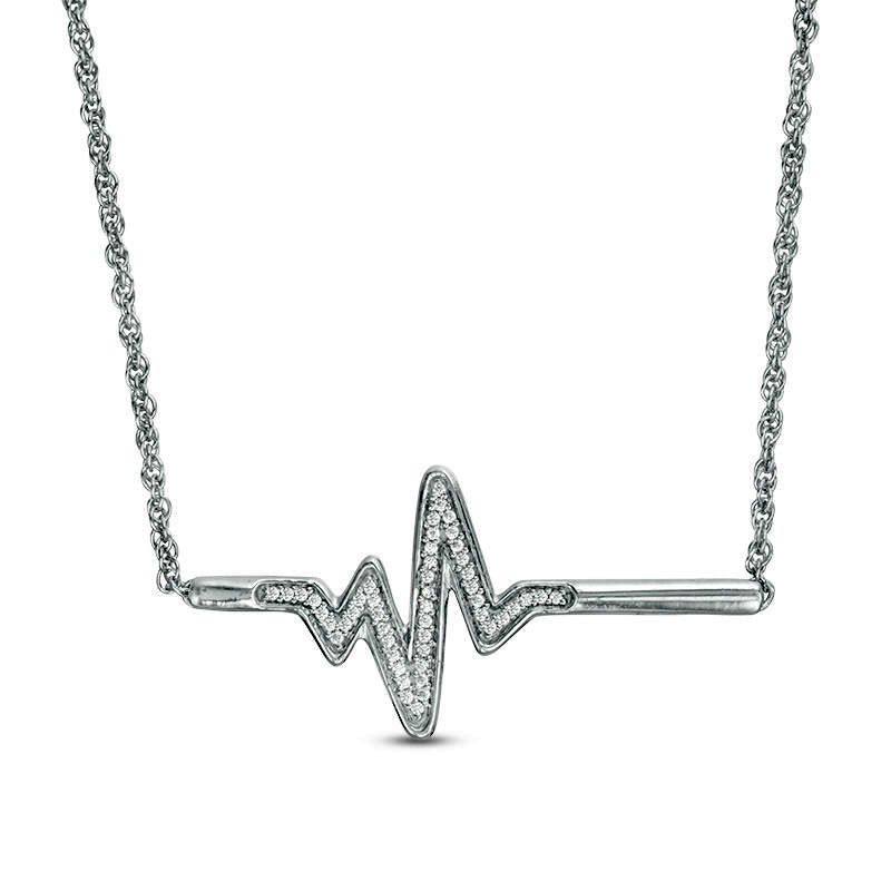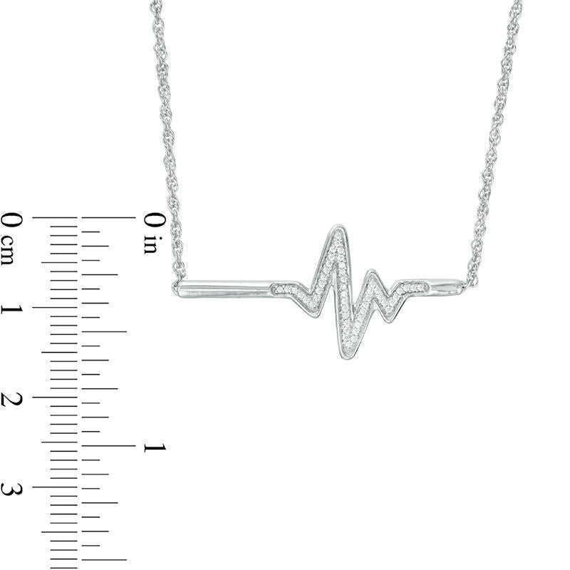 0.1 CT. T.W. Natural Diamond Heartbeat Bar Necklace in Sterling Silver - 16.7"