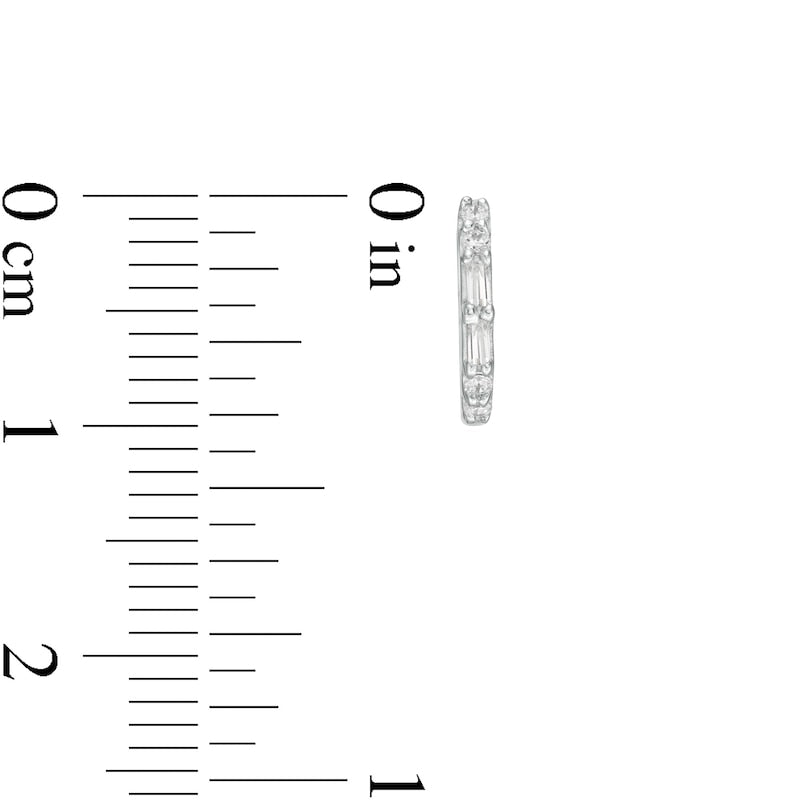 0.13 CT. T.W. Baguette and Round Diamond Hoop Earrings in 10K White Gold