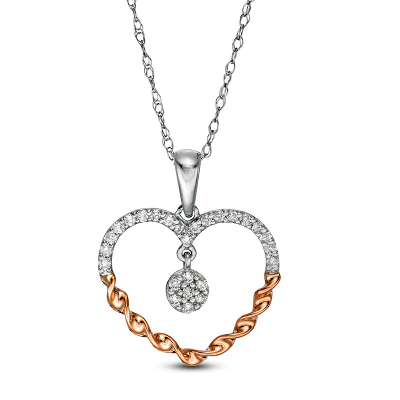 0.13 CT. T.W. Composite Natural Diamond Twist Heart Outline Pendant in 10K Two-Tone Gold