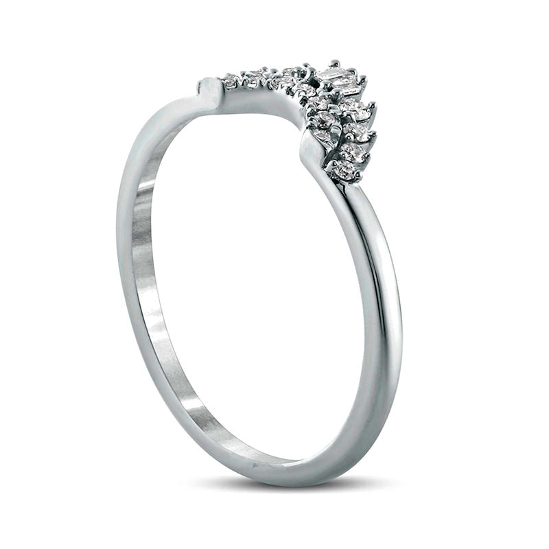 0.17 CT. T.W. Baguette and Round Natural Diamond Contour Wedding Band in Solid 10K White Gold