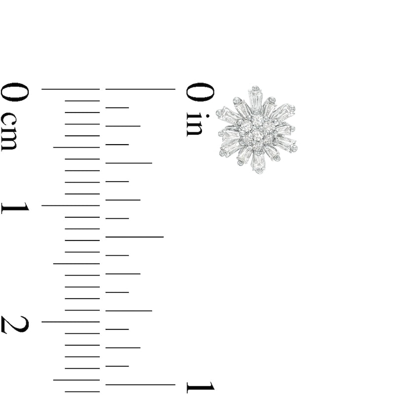 0.25 CT. T.W. Baguette and Round Diamond Sunburst Stud Earrings in 10K White Gold