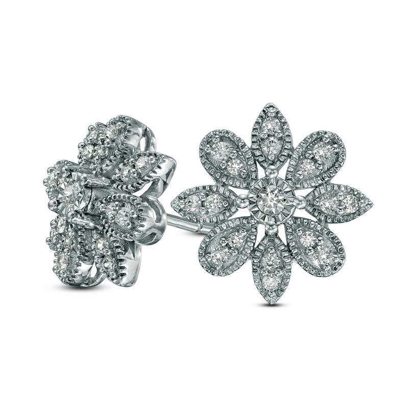0.25 CT. T.W. Diamond Flower Vintage-Style Stud Earrings in 10K White Gold