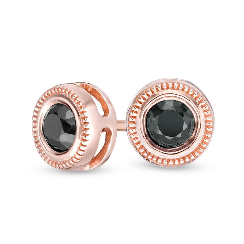 0.25 CT. T.W. Enhanced Black Diamond Bezel-Set Solitaire Vintage-Style Stud Earrings in 10K Rose Gold
