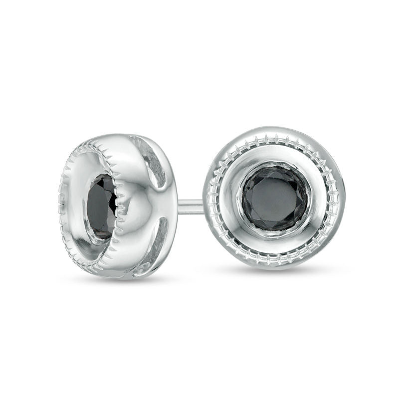0.25 CT. T.W. Enhanced Black Diamond Bezel-Set Solitaire Vintage-Style Stud Earrings in 10K White Gold