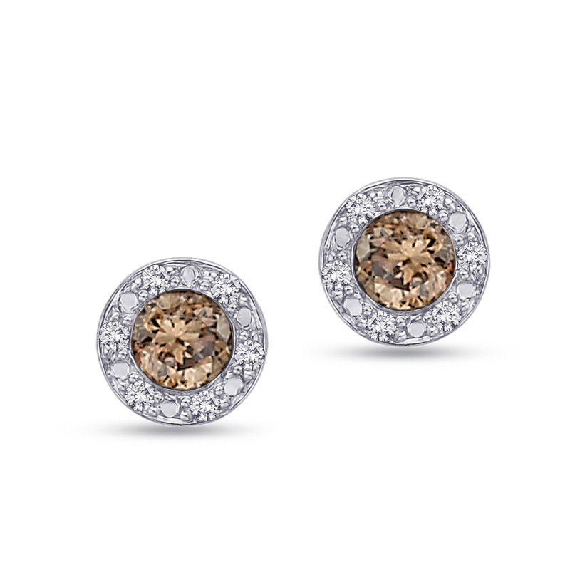 0.33 CT. T.W. Enhanced Champagne and White Diamond Frame Stud Earrings in 10K White Gold