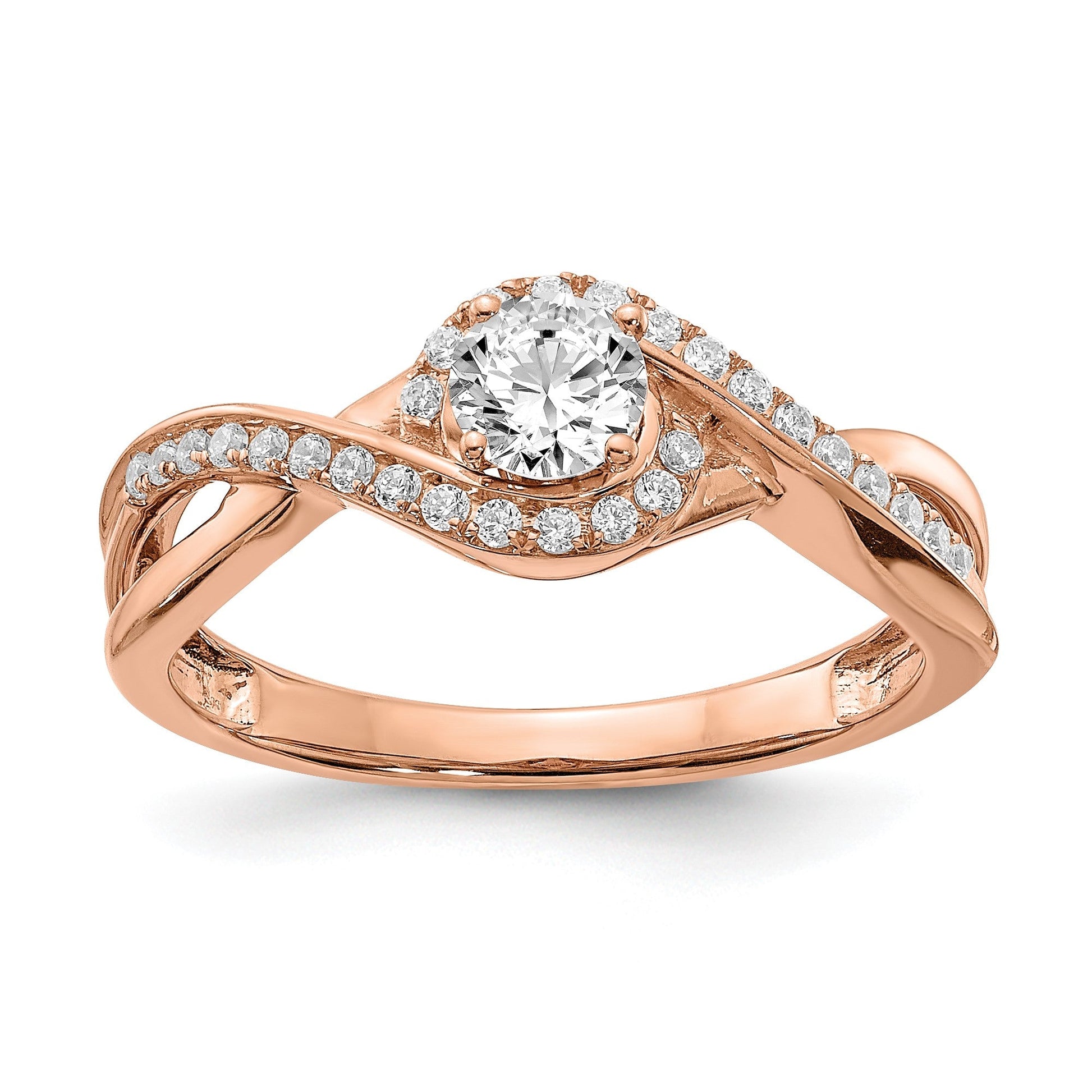 Beautifully set in sparkling diamonds, a 1/4 ct. natural and earth mined round diamond commands attention in the lovely engagement ring of this engagement ring. A single by passing row of additional round diamonds line the 14K white gold band to complete the look.