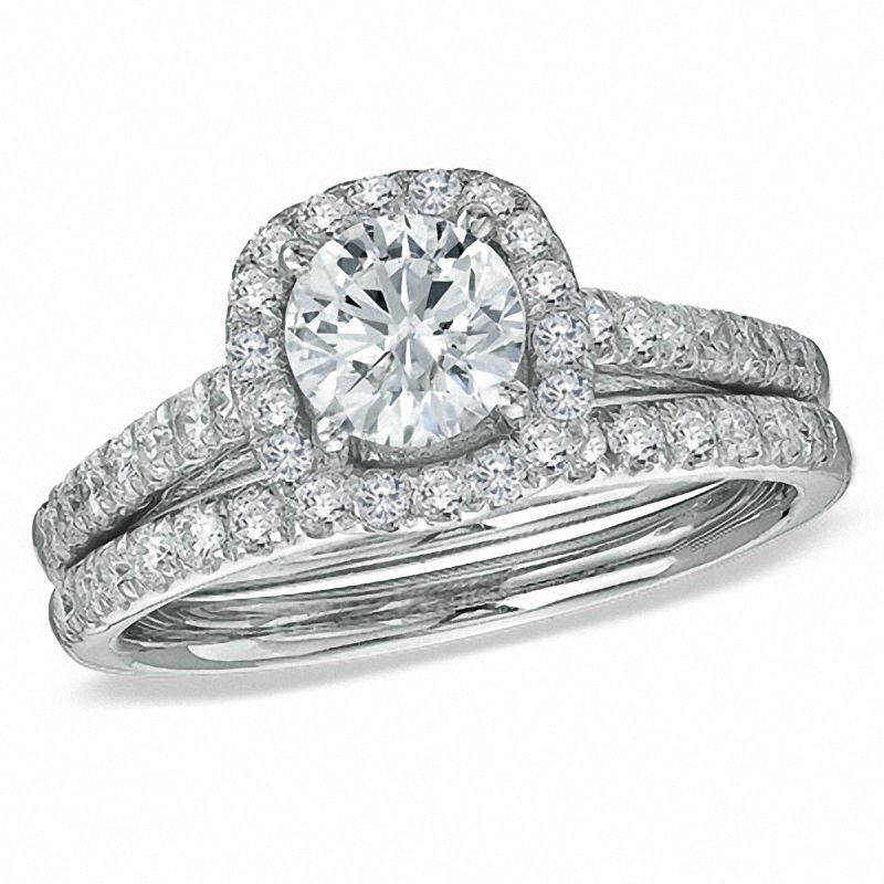 1-3/4 CT. Diamond Halo Bridal Engagement Ring Set in 14K White Gold