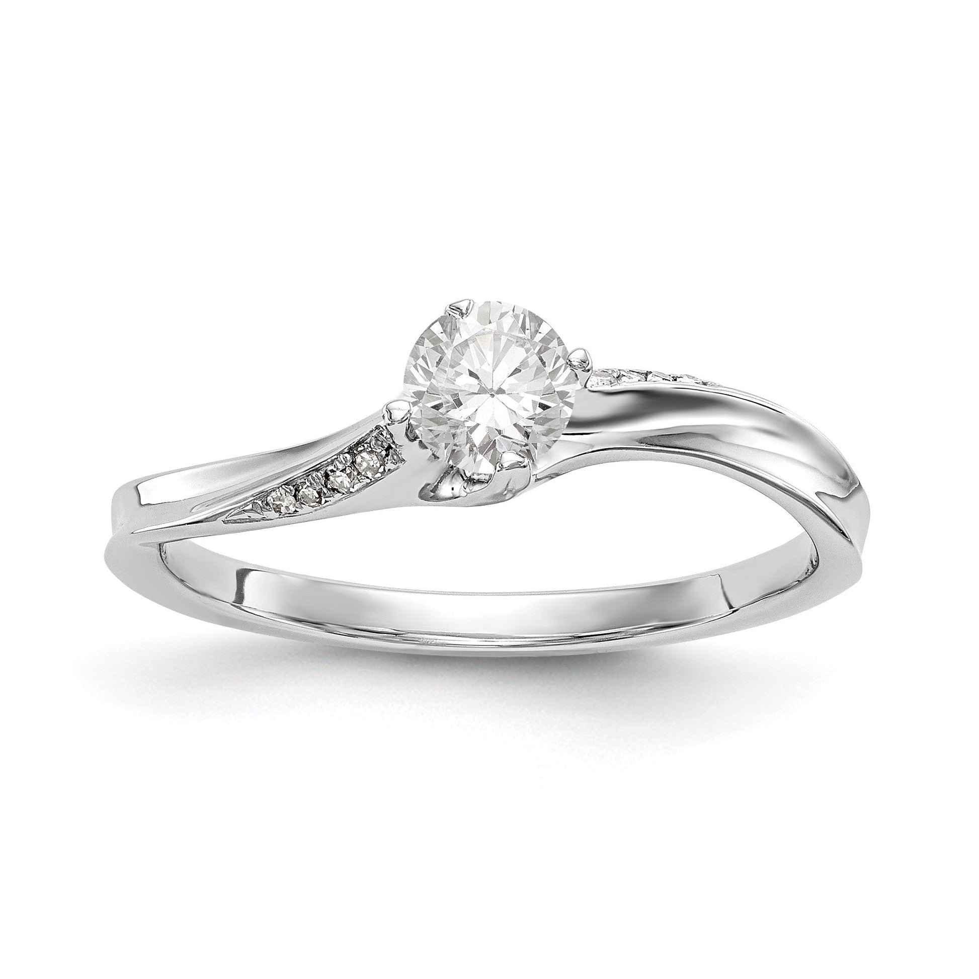 Beautifully set in sparkling diamonds, a 1/4 ct. natural and earth mined round diamond commands attention in the lovely engagement ring of this engagement ring. A single by passing row of additional round diamonds line the 14K white gold band to complete the look.