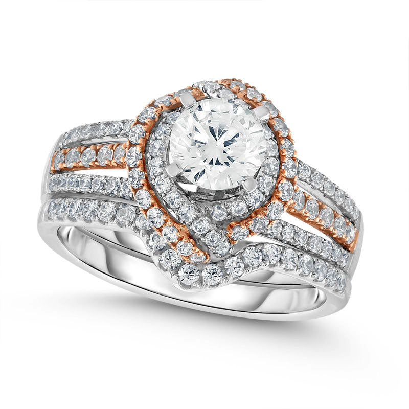 1.5 CT. T.W. Natural Diamond Bypass Marquise Frame Bridal Engagement Ring Set in Solid 14K Two-Tone Gold