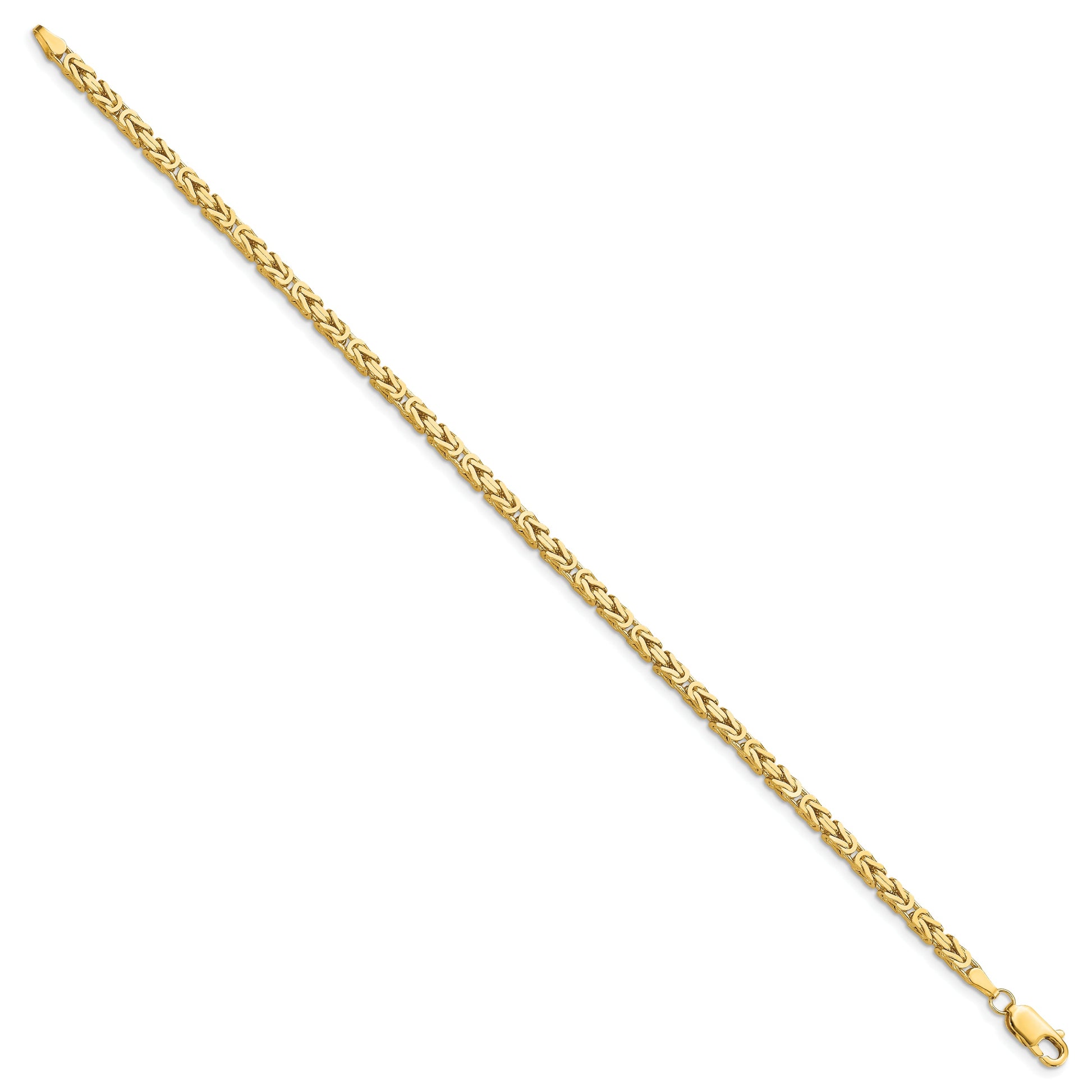 The 10K Yellow Gold 2.5mm Byzantine Chain radiates a classic elegance that effortlessly enhances any style. Crafted with 10K gold, this chain promises durability and a polished shine that catches the eye. Measuring 8 inches in length with a width of 2.5mm, its intricate Byzantine pattern is both timeless and unique, making it a standout piece. The lobster clasp ensures secure wear, while the hand-made craftsmanship guarantees quality. Designed for all, this unisex bracelet is a must-have. Add the 10K Yellow Gold 2.5mm Byzantine Chain to your collection for a touch of sophistication.