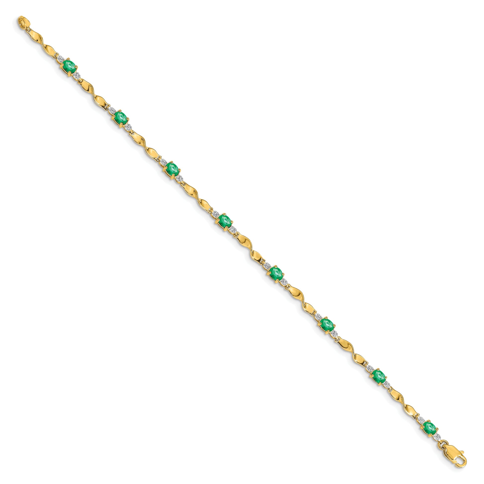 This exquisite 10K Yellow Gold Diamond And Oval Emerald Bracelet is nothing short of stunning. Crafted from high-quality 10K yellow gold, this bracelet radiates elegance with its rich polished finish. Measuring 7 inches, it fits comfortably on the wrist, boasting a classic 4mm width. Oval emeralds set alongside shimmering diamonds create a captivating contrast, adding a touch of luxury to any outfit. The bracelet secures safely with a sturdy lobster clasp, ensuring peace of mind. Perfect for those special occasions or to elevate everyday wear, the 10K Yellow Gold Diamond And Oval Emerald Bracelet promises unparalleled style and timeless allure.