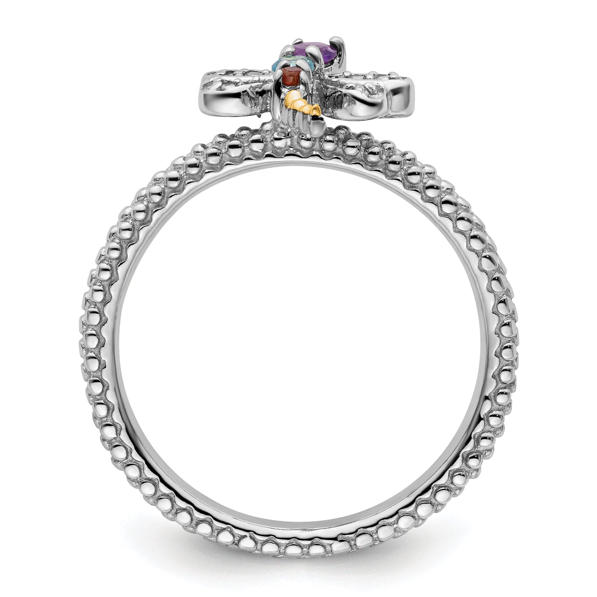 Introducing the 14K/Silver Two-Tone Sterling Silver & 14K Stackable Expressions Gemstone & Diamond Dragonfly Ring, a charming piece that adds sparkle and style to any look. Crafted from polished 14K gold and silver, it features vibrant round stones like amethyst, Swiss blue topaz, garnet, and sparkling diamonds, all set in a prong and pavé design. The ring’s stackable style makes it easy to match with other rings for a unique vibe. Durable and beautifully made, the 14K/Silver Two-Tone Sterling Silver & 14K Stackable Expressions Gemstone & Diamond Dragonfly Ring is a fun addition to your jewelry world that’s sure to turn heads.
