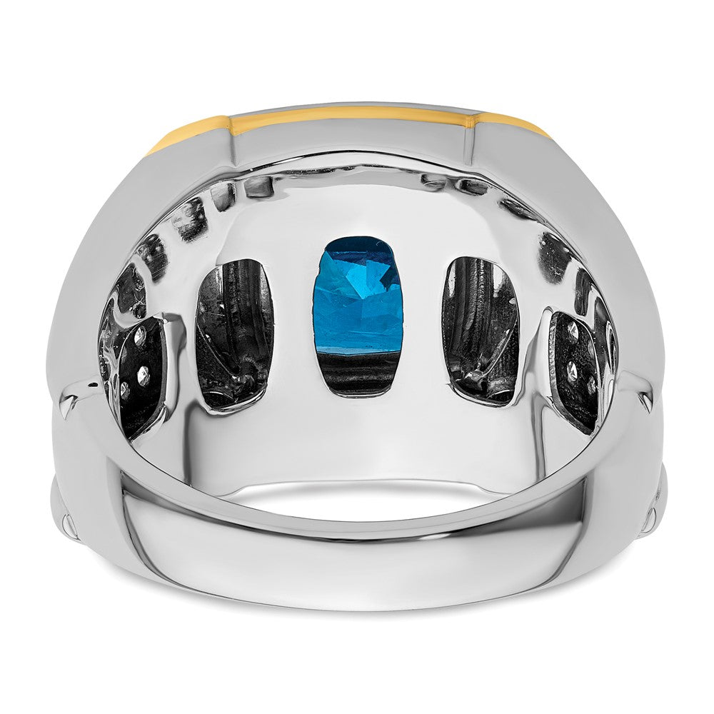 Introducing the striking 14k Two-Tone 3/4 Ct. Lab Grown Diamond and Blue Topaz Men's Ring. This fine piece of jewelry features a remarkable combination of lab-grown diamonds and vibrant blue topaz, set in luxurious 14K two-tone gold. The diamonds boast VS/SI+ clarity and a G+ color grade, ensuring a sophisticated sparkle that catches every eye. With its unique blend of materials and craftsmanship, this ring is designed for those who appreciate elegance wrapped in modern style. Stand out with confidence wearing the 14k Two-Tone 3/4 Ct. Lab Grown Diamond and Blue Topaz Men's Ring.