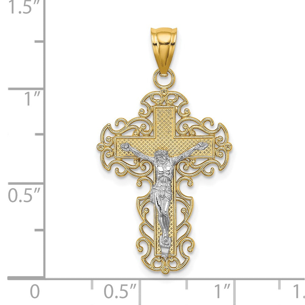 14k Two-tone Gold Two-tone Gold w/Lace Trim Crucifix Charm