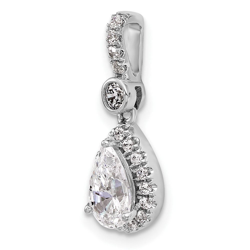 14K White Gold 1 carat Lab Grown Diamond VS/SI+ G+ Pear Complete Halo Pendant