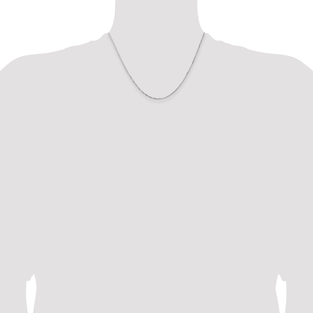The 14K White Gold 14K 1.10mm Concave Box Chain is a sleek and solid necklace that offers style and durability. Made from high-quality 14K white gold with a polished finish, it features a unique concave design that catches the eye. The 18-inch chain has a fine 1.1mm width, perfect for everyday wear or layering with other jewelry. A sturdy lobster clasp ensures a secure fit. Crafted with precision using machine-made methods, this chain comes with a lifetime guarantee. The white gold's bright hue gives it a modern look that’s easy to match with any outfit.