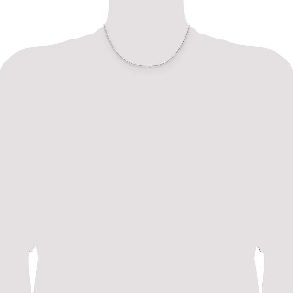 The 14K White Gold 14K 1.25mm D/C Round Cable Chain is a sleek and stylish necklace that adds shine to any outfit. Made from pure 14K white gold and finished with a polished look, this chain measures 16 inches long and features a durable lobster clasp. Its thin 1.25mm width gives it a subtle elegance perfect for daily wear or layering. The rhodium plating keeps its bright finish over time, while the lifetime guarantee ensures lasting quality. The 14K White Gold 14K 1.25mm D/C Round Cable Chain is a timeless piece meant to elevate your jewelry collection.