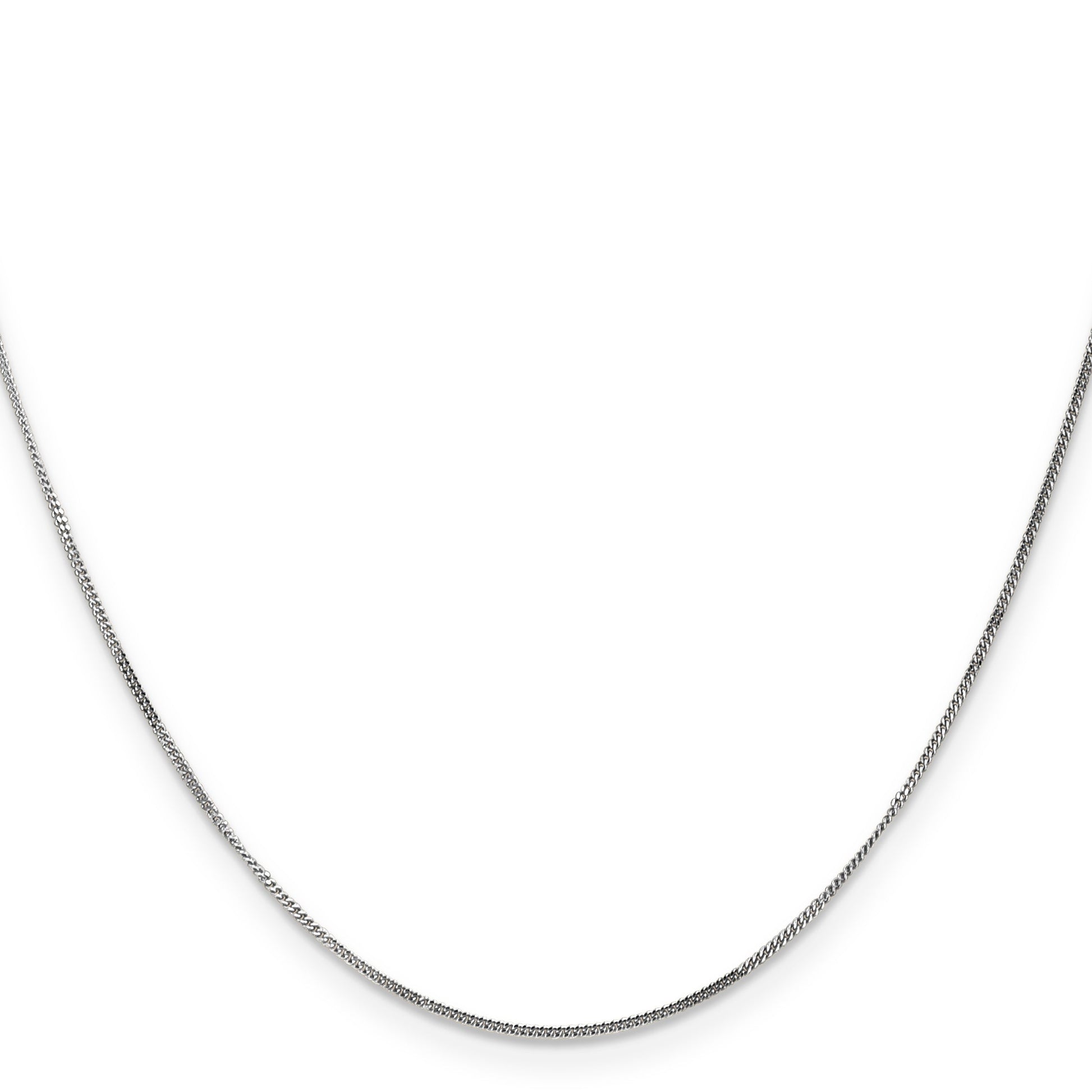 Experience luxury every day with the 14K White Gold 13 Inch .9mm Curb Pendant Chain. Crafted from polished 14K gold and plated with rhodium, this chain gleams brightly. Its 13-inch length and .9mm width provide just the right touch of elegance, perfect for layering or showing off your favorite pendant. The solid curb chain design gives it strength and a timeless look. A spring ring clasp makes it easy to wear. Expertly cast and machine-made, this pendant chain is a stunning addition to any jewelry collection. Enjoy fine craftsmanship with the 14K White Gold 13 Inch .9mm Curb Pendant Chain.