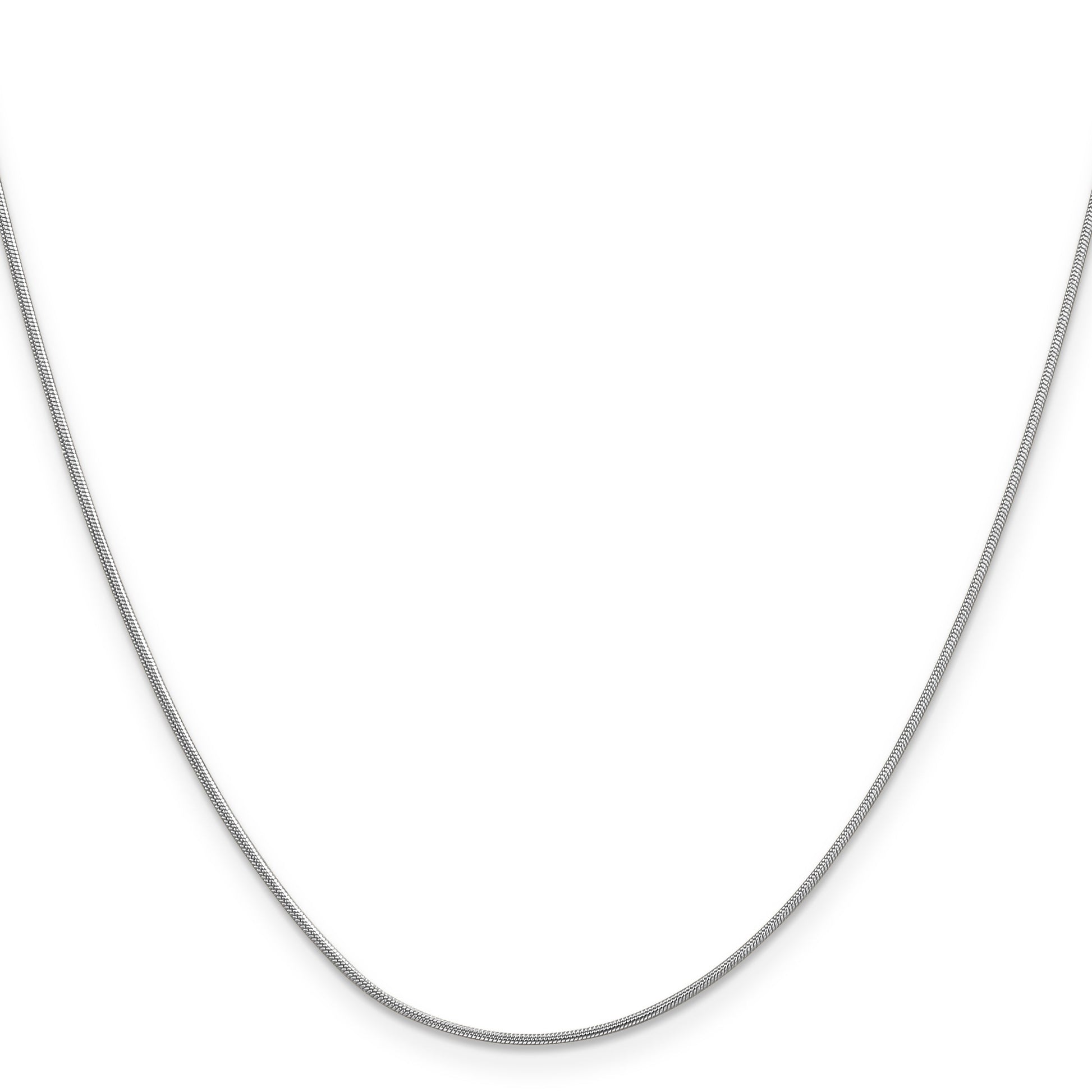 Introducing the 14K White Gold 14K 30 Inch .9mm Round Snake With Lobster Clasp Chain, a sleek and durable piece perfect for any jewelry collection. Crafted from pure 14K gold, this necklace features a polished finish that shines with elegance. The 30-inch length makes it versatile, slipping easily over your head or layering with other pieces. The 0.9mm round snake chain is smooth and flexible, offering a comfortable fit. The lobster clasp ensures secure wear, while rhodium plating keeps the shine bright. A simple, elegant chain designed for the modern woman, the 14K White Gold 14K 30 Inch .9mm Round Snake With Lobster Clasp Chain adds a touch of class to everyday style.