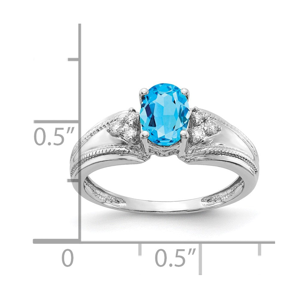 14k White Gold 7x5mm Oval Blue Topaz VS Diamond ring