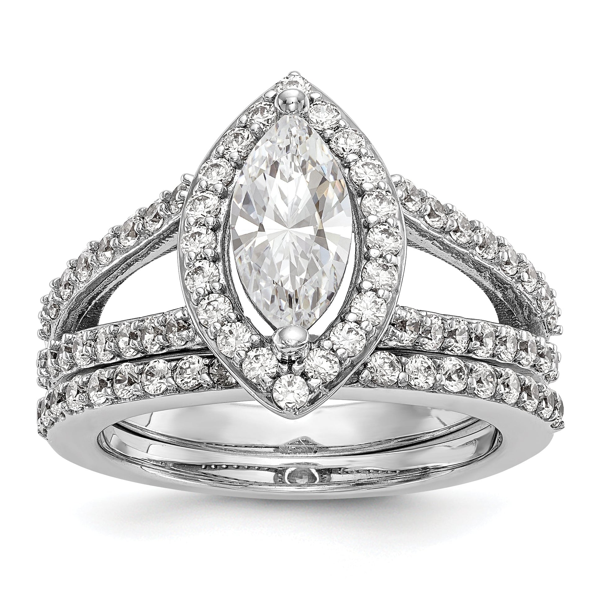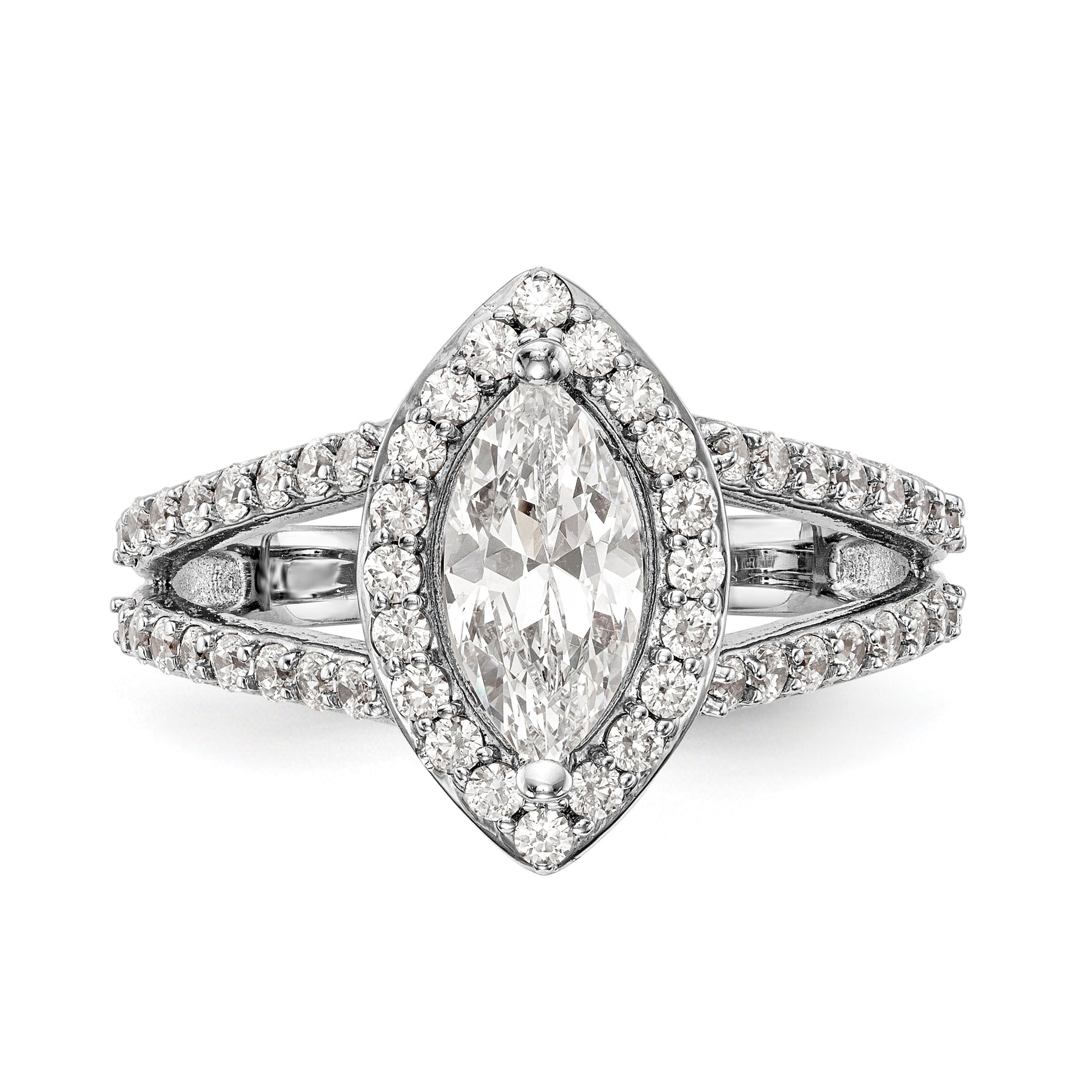 14K White Gold Diamond Marquise CZ Halo Engagement Ring
