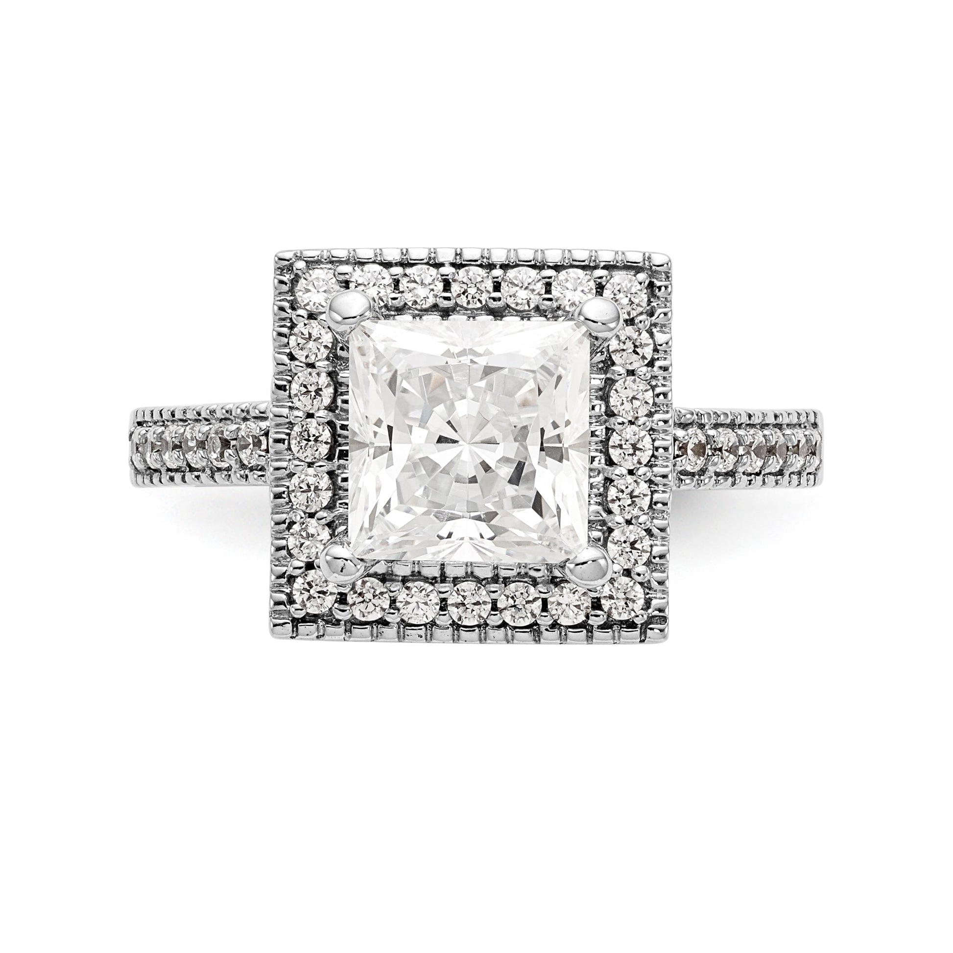 14K White Gold Diamond Princess CZ Square Halo Engagement Ring
