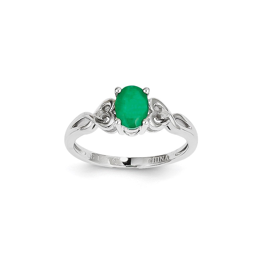 Introducing our exquisite 14k White Gold Emerald Diamond Ring - the perfect blend of elegance and sophistication. Crafted with high-quality 14k White Gold and weighing 2.33 grams, this ring is a true treasure. The primary stone is a breathtaking oval-shaped Emerald, weighing 0.82 ct and prong set to perfection. Two round-shaped Diamonds, totaling 0.02 ctw, complement the Emerald and add extra sparkle to the ring. The Emerald is treated with oiling/resin to ensure its natural beauty is preserved. With a stone size of 7 x 5 mm and a minimum and maximum size of 5.00 and 9.00 respectively, this ring is perfect for any finger size. Rhodium plating adds an extra layer of protection to the ring, ensuring it will last a lifetime. Ideal for formal occasions or as an everyday accessory, this 14k White Gold Emerald Diamond Ring is a must-have for anyone who loves to sparkle.