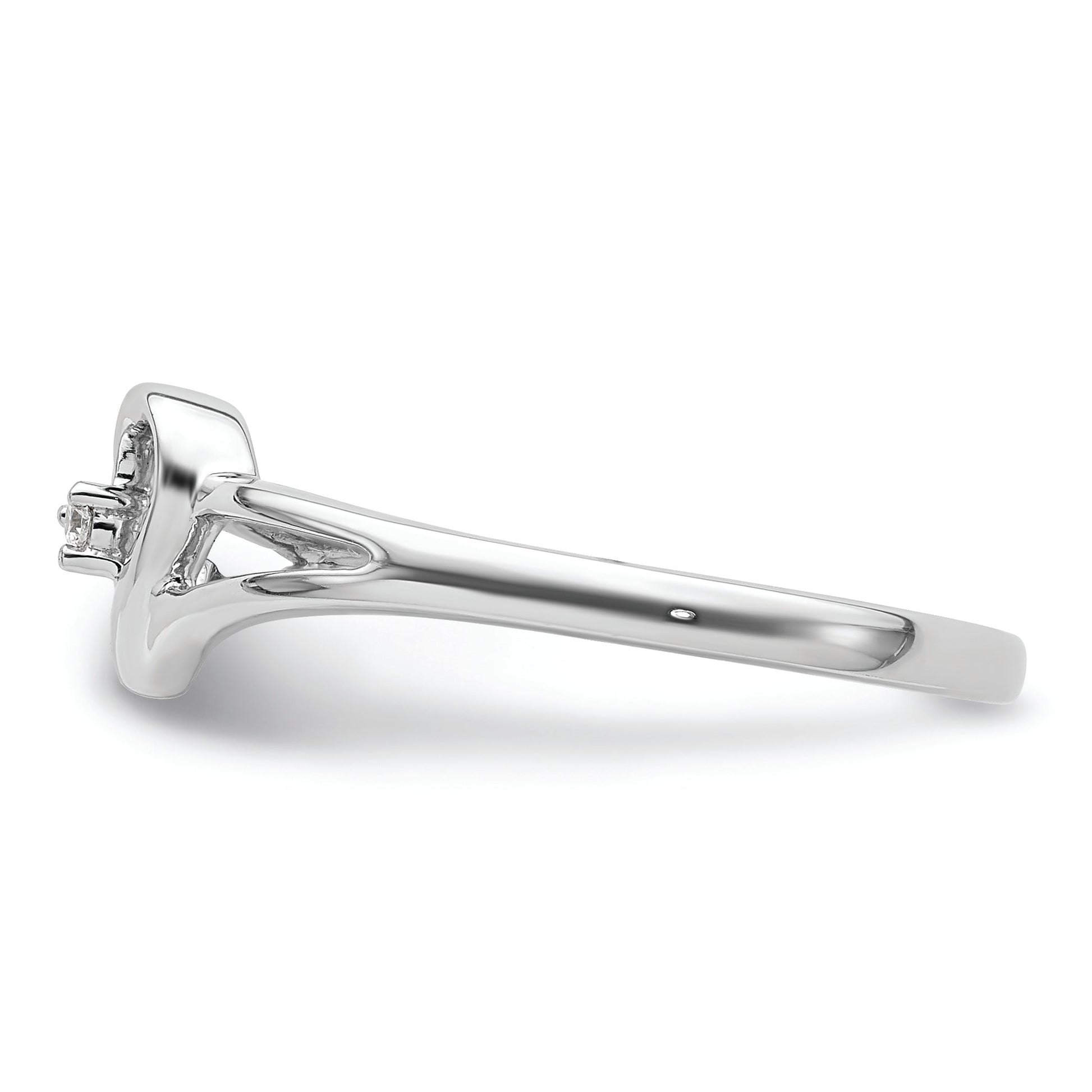 The First Promise Heart 14K White Gold Engagement Ring is a beautiful symbol of love. Crafted from high-quality 14K white gold, it features a sparkling round diamond just 0.01 carats. The sleek, polished band tapers from 1.5 to 4.25 mm, giving it a slender and elegant look. The diamond, set with a prong, adds a touch of sparkle with clarity rated I1 (AA). Its open back design makes it comfortable to wear daily. Whether you’re saying "I do" or just celebrating love, the First Promise Heart ring delivers a timeless and chic statement.