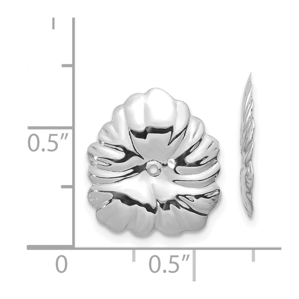Add a touch of charm with the 14K White Gold Floral Earring Jackets. Crafted from solid 14K gold, these elegant jackets feature a beautiful floral design that enhances your everyday look. Measuring 15 mm long and 14 mm wide, they are plated with rhodium for a sleek, shiny finish. Designed as earring enhancers, they slip easily into your existing studs, creating a sophisticated layered effect. Perfect for women who love to stand out, these jewelry pieces are made with durable die-struck craftsmanship. Elevate your style with the exquisite 14K White Gold Floral Earring Jackets and enjoy the perfect blend of beauty and quality.