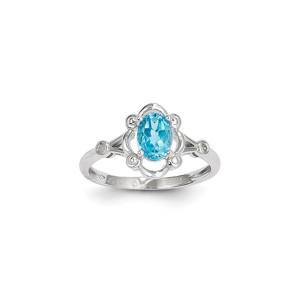 14k White Gold Light Swiss Blue Topaz Diamond Ring