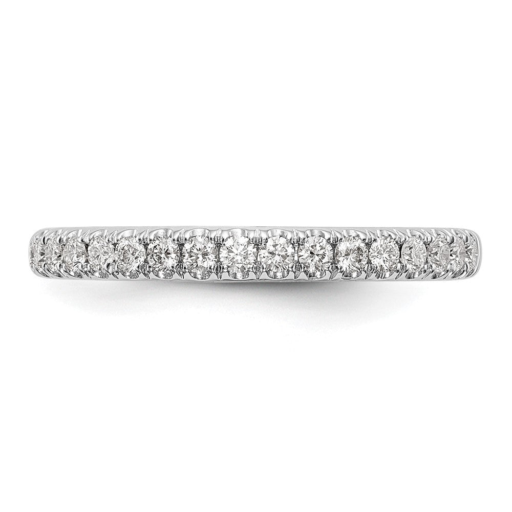 The True Origin 14K White Gold 3/8 Carat Lab Grown Diamond Band offers elegant beauty and quality. Crafted from polished 14K white gold, this ring features 17 lab-grown diamonds with VS+ clarity, giving a bright, crystal-clear appearance. The band tapers from 3.0 to 2.1 mm and is plated in rhodium for a shiny finish. The diamonds, each 1.8 mm, are round-cut, adding sparkle to any special moment. Perfect as a wedding band, this piece is solidly made and can be resized as needed. True Origin 14K White Gold 3/8 Carat Lab Grown Diamond Band combines style and value for women who want timeless elegance.