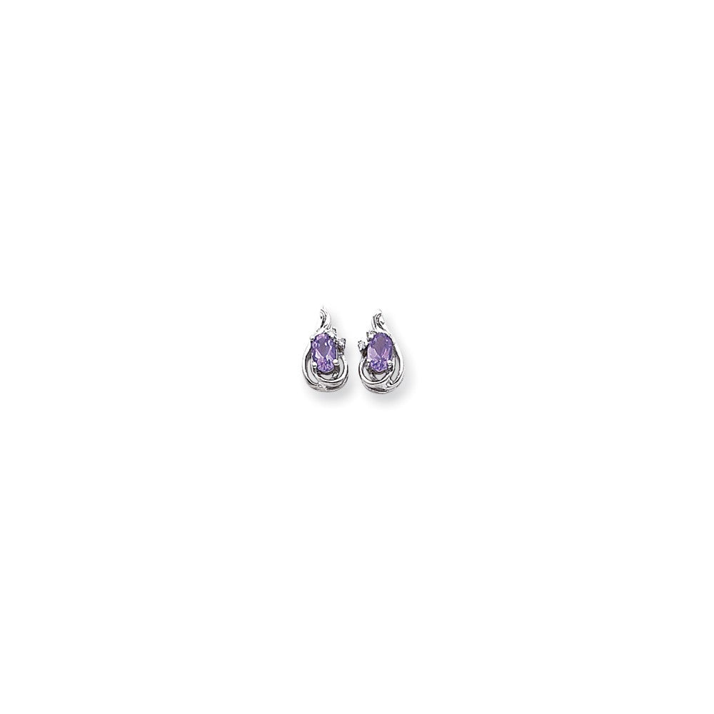 These earrings are made of 14 karat white gold and weigh 2.14 grams. They are 14 millimeters long and 8 millimeters wide. The earrings have diamonds that weigh a total of 0.040 carats. They come with a post and push-back closure for added security. The diamonds are natural and the earrings are great for those born in February. These elegant earrings are perfect for any occasion.