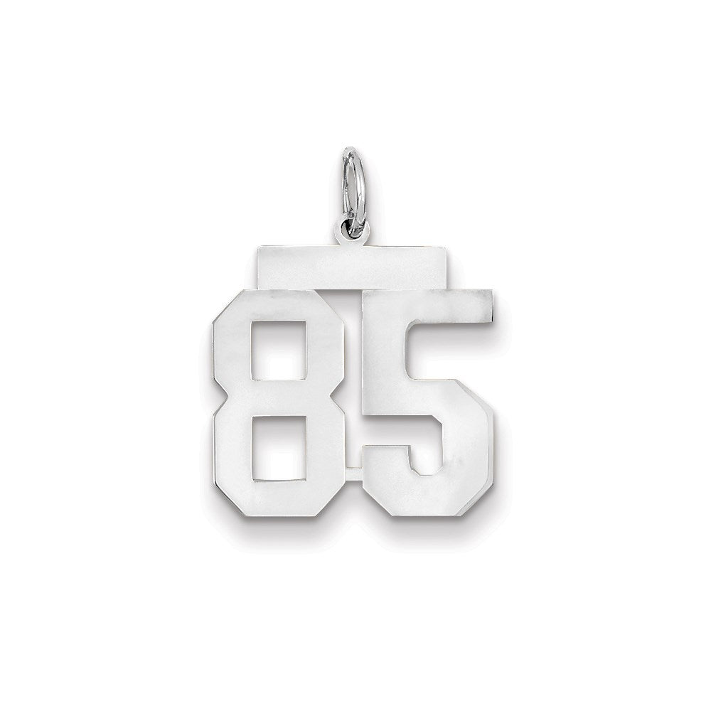 Introducing the stunning '14k White Gold WG Medium Polished Number 85 Charm', made with the finest quality 14k white gold and weighing 1.78 grams. Its polished finish and rhodium plating give it a sophisticated look that's perfect for everyday wear. This stunning piece of jewelry is a pendant/charm type featuring the number 85, and is sold by unit. The relative size of the charm is medium, making it an ideal accessory for any outfit. Invest in this exquisite 14k White Gold charm today and add a touch of elegance to your jewelry collection.