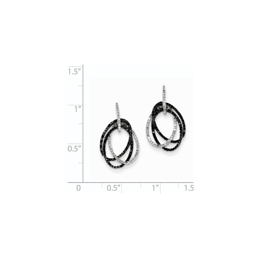 14k White Gold White and Black Real Diamond Ovals Dangle Post Earrings