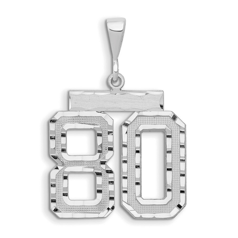 14k White Goldw Small Brushed Diamond-cut Number 80 Charm