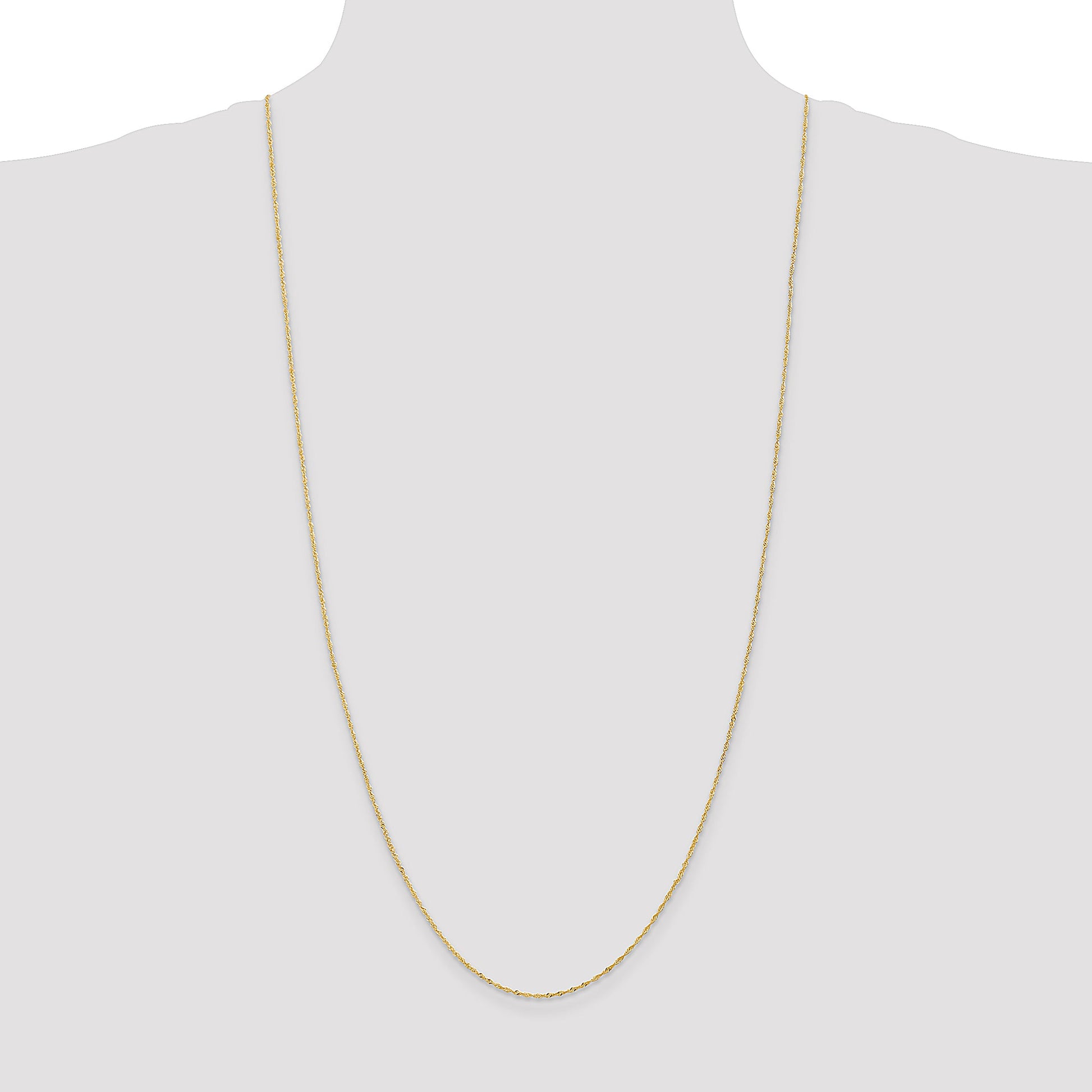The 14K Yellow Gold 30 Inch Singapore Chain captures the essence of elegance with its slender 1.10mm width. Crafted from polished 14K yellow gold, this stunning chain features a timeless Singapore twist design that adds a touch of sophistication to any outfit. Its generous 30-inch length drapes gracefully, offering a versatile look suitable for any occasion. Equipped with a secure spring ring clasp, this chain ensures ease of wear and peace of mind. Whether worn alone or adorned with a pendant, the 14K Yellow Gold 30 Inch Singapore Chain is the perfect accessory for the modern woman.