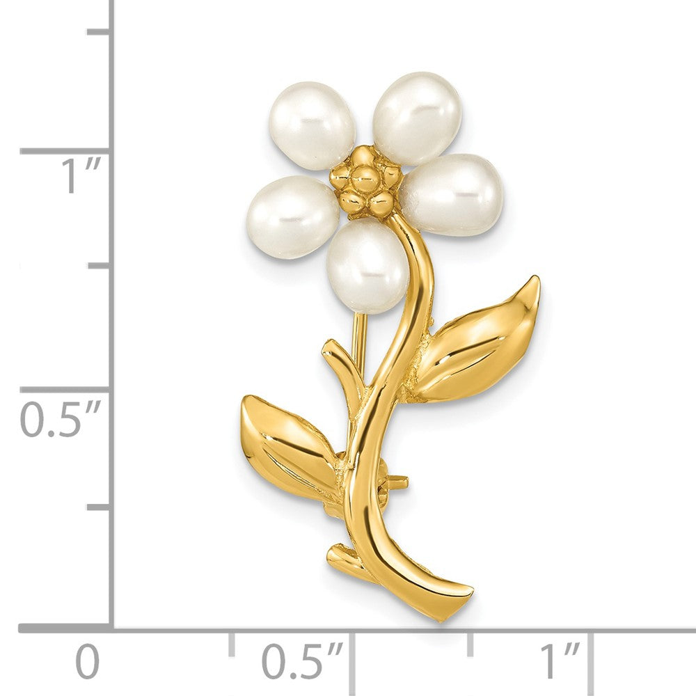 14k Yellow Gold 4-5mm Rice White FWC Pearl Flower Brooch