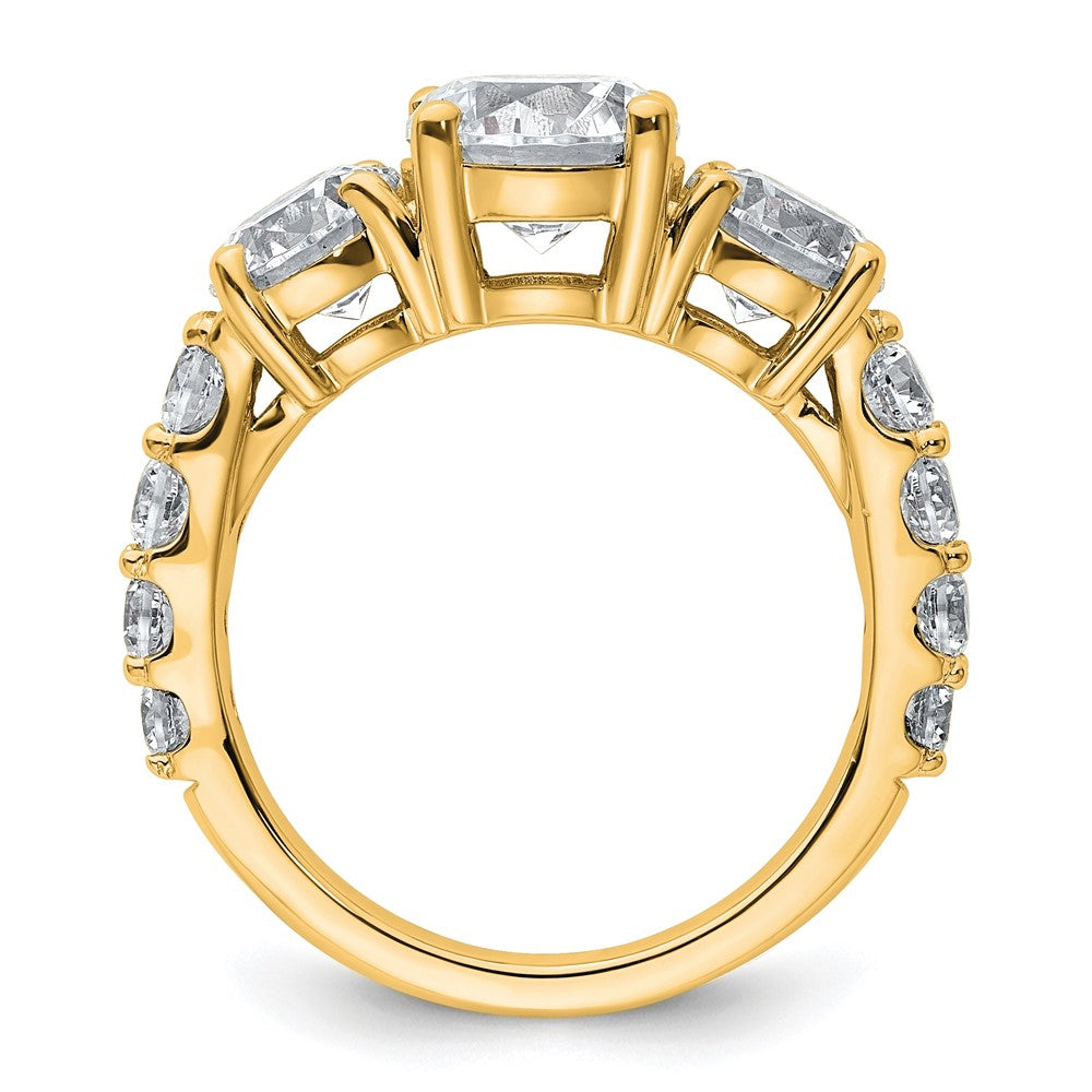 14K Yellow Gold 4 carat Lab Grown Diamond VS+ F+ Round Complete Three Stone Engagement Ring