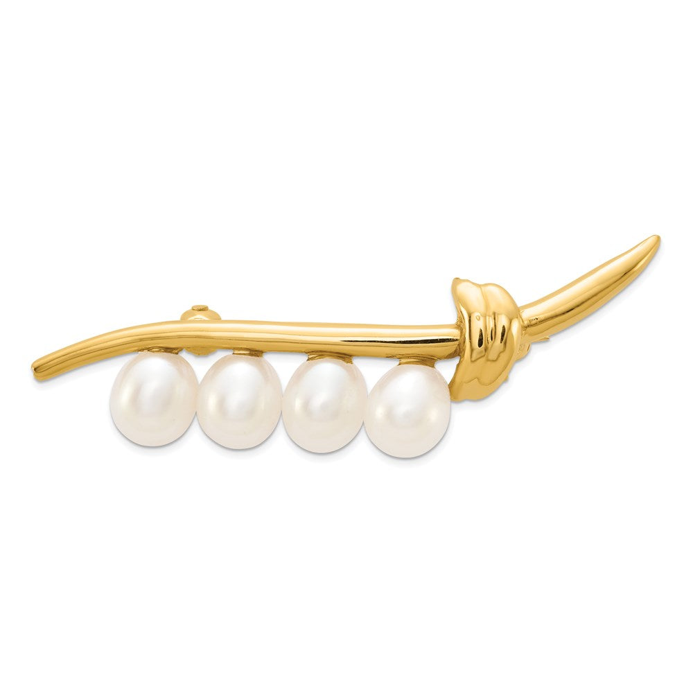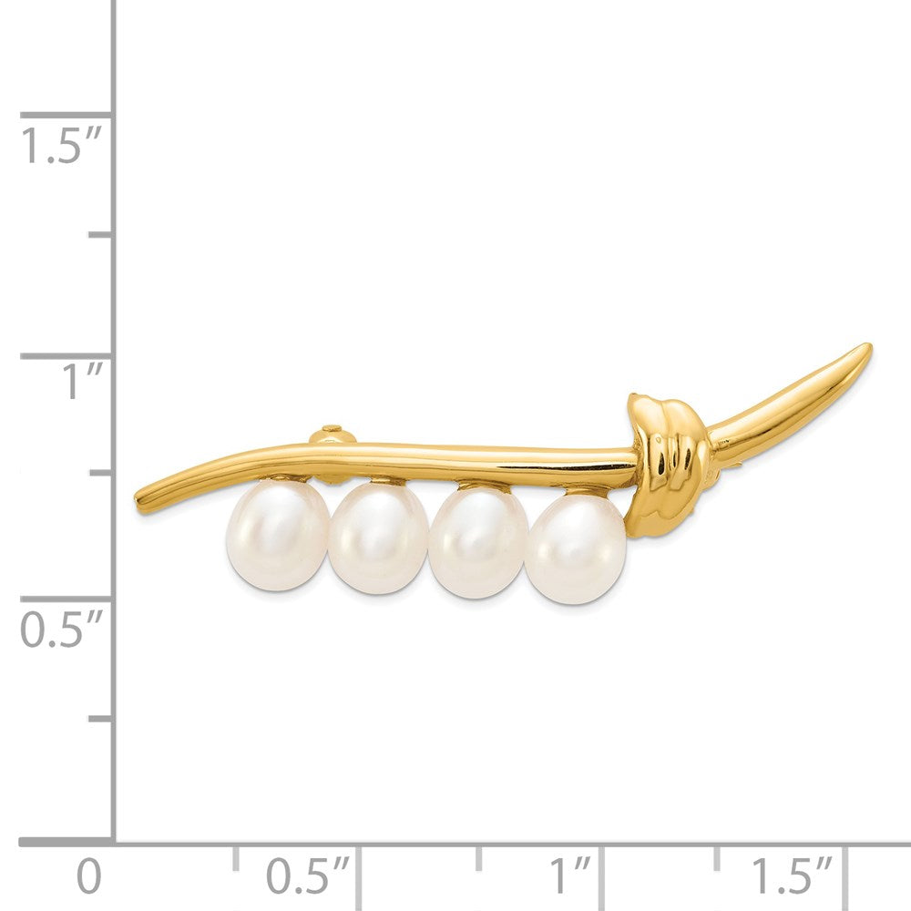 14k Yellow Gold 6-7mm White Rice Freshwater Cultured Pearl Pin