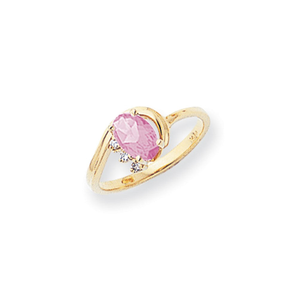 14k Yellow Gold 7x5mm Oval Pink Sapphire AAA Diamond ring