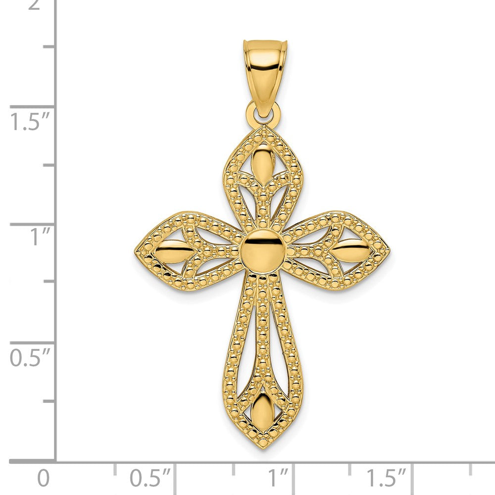 14k Yellow Gold Beaded & Polished Fancy Cross Pendant