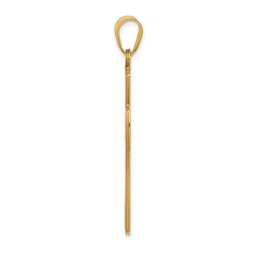 This beautiful pendant is made of 14k yellow gold and features a cross design with the Serenity Prayer inscribed on the back. Polished to perfection, this pendant has a weight of 3.86 grams and a length of 41.5mm. The charm measures 35.3mm by 25mm and is reversible, making it a versatile addition to your jewelry collection. Textured for added visual interest, this pendant is sold individually and comes with a bail that has a width of 4.5mm and a length of 8mm. Whether as a gift or a statement piece for yourself, this pendant is sure to impress.