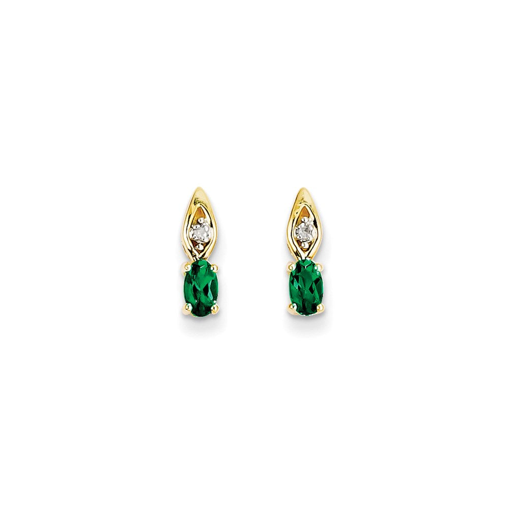 These stunning earrings feature a beautiful combination of 14k yellow gold, diamonds, and genuine emeralds. The precious metal weighs 1.14 grams, making for a luxuriously lightweight feel. Crafted with the utmost attention to detail, these earrings are of the highest quality. The yellow gold hue adds warmth and richness to the design, while the diamonds and emeralds sparkle and shine. A perfect gift for a loved one born in May, or an elegant addition to your own collection. Experience the beauty and brilliance of these 14k Yellow Gold Diamond & Genuine Emerald Earrings.