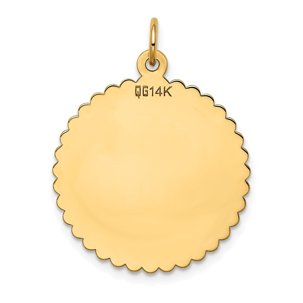 14k Yellow Gold Engravable Round Scalloped Disc Charm