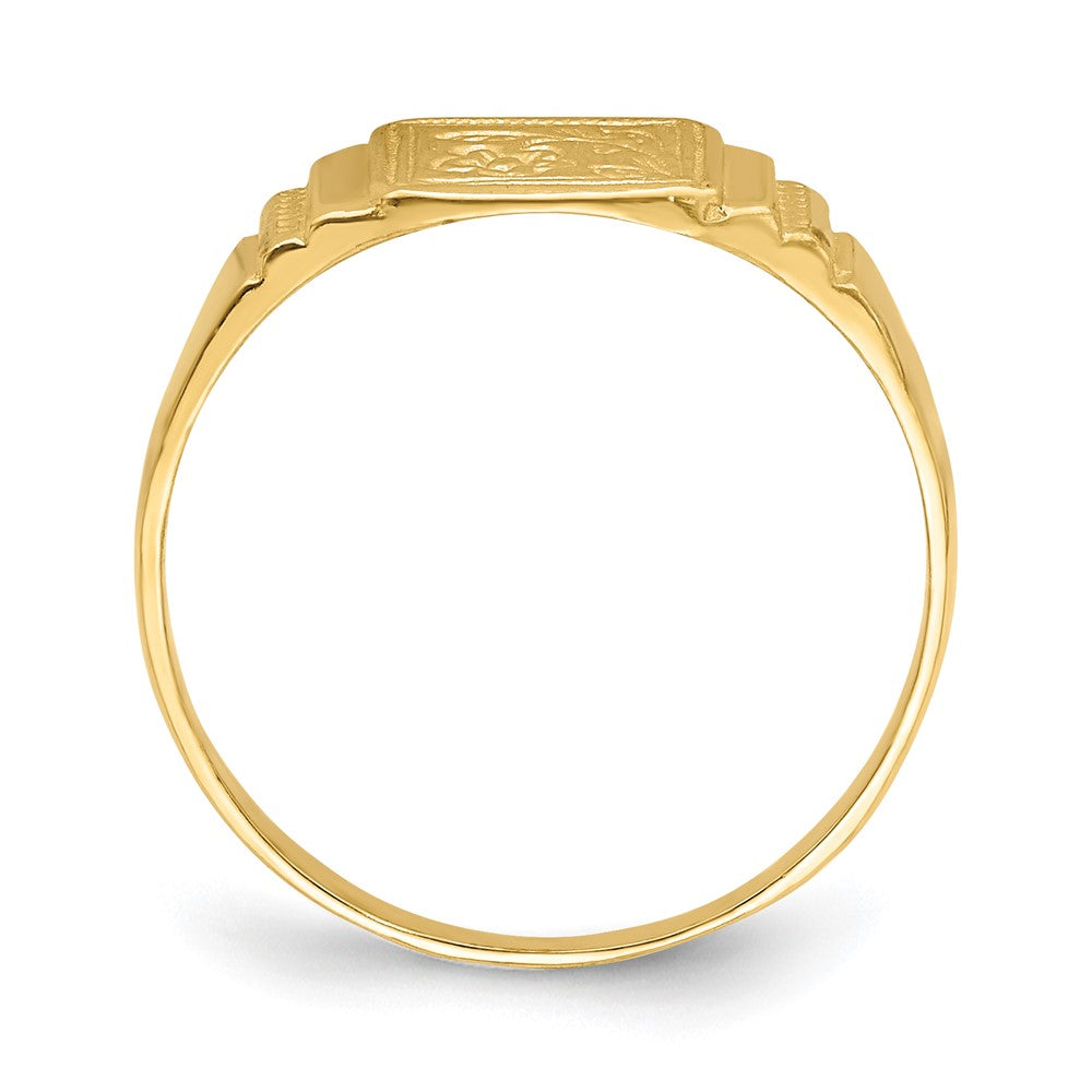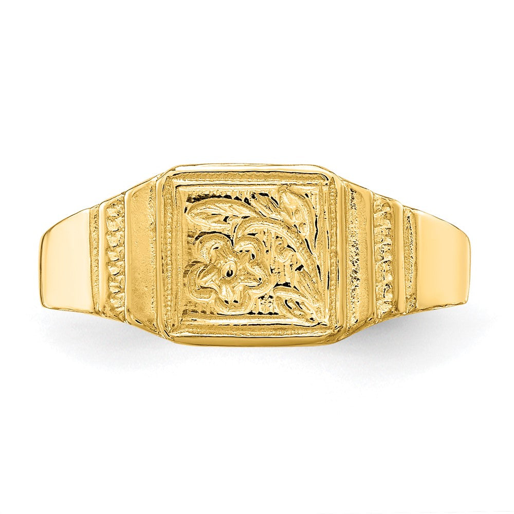 14k Yellow Gold Flower Engraved Square Baby Signet Ring