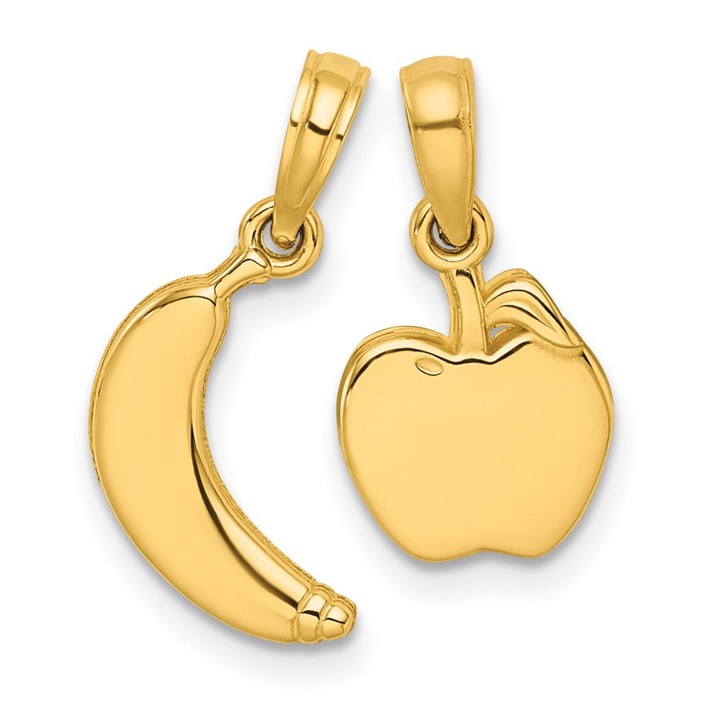 14K Yellow Gold Polished Banana and Apple Pendant Set