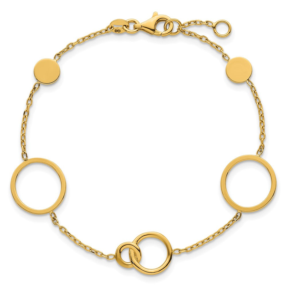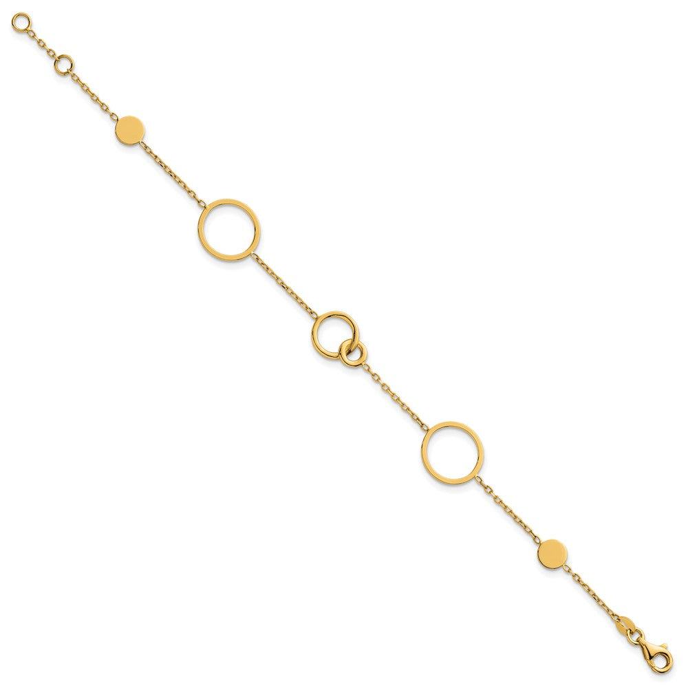 14K Yellow Gold Polished Circle and Chain Pattern 7.25 Inch Bracelet Plus 0.5 Inch Extender